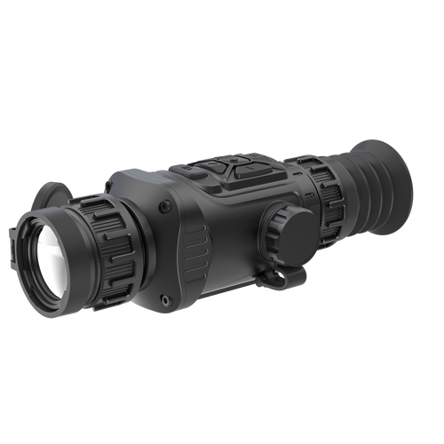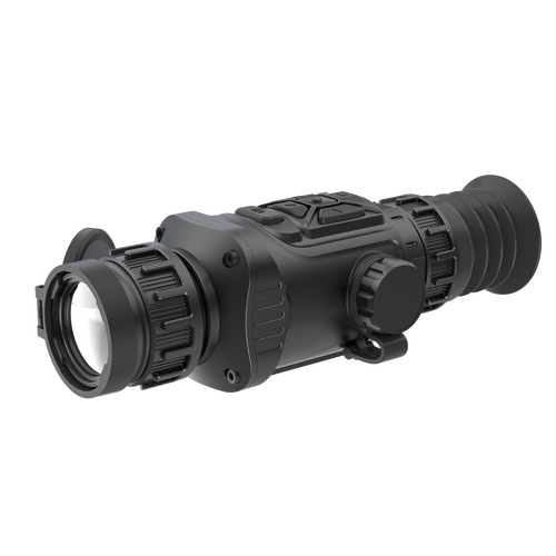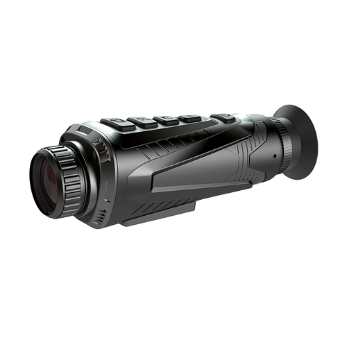 This compact thermal monocular features a 640x512 uncooled VOx sensor, 35mm lens, and 1800m detection range. It offers 3.2x mag, 4x digital zoom, OLED display (1280x2024), laser rangefinder (1200m), WiFi, IP66 rating, and 6h battery life—all at just 335g